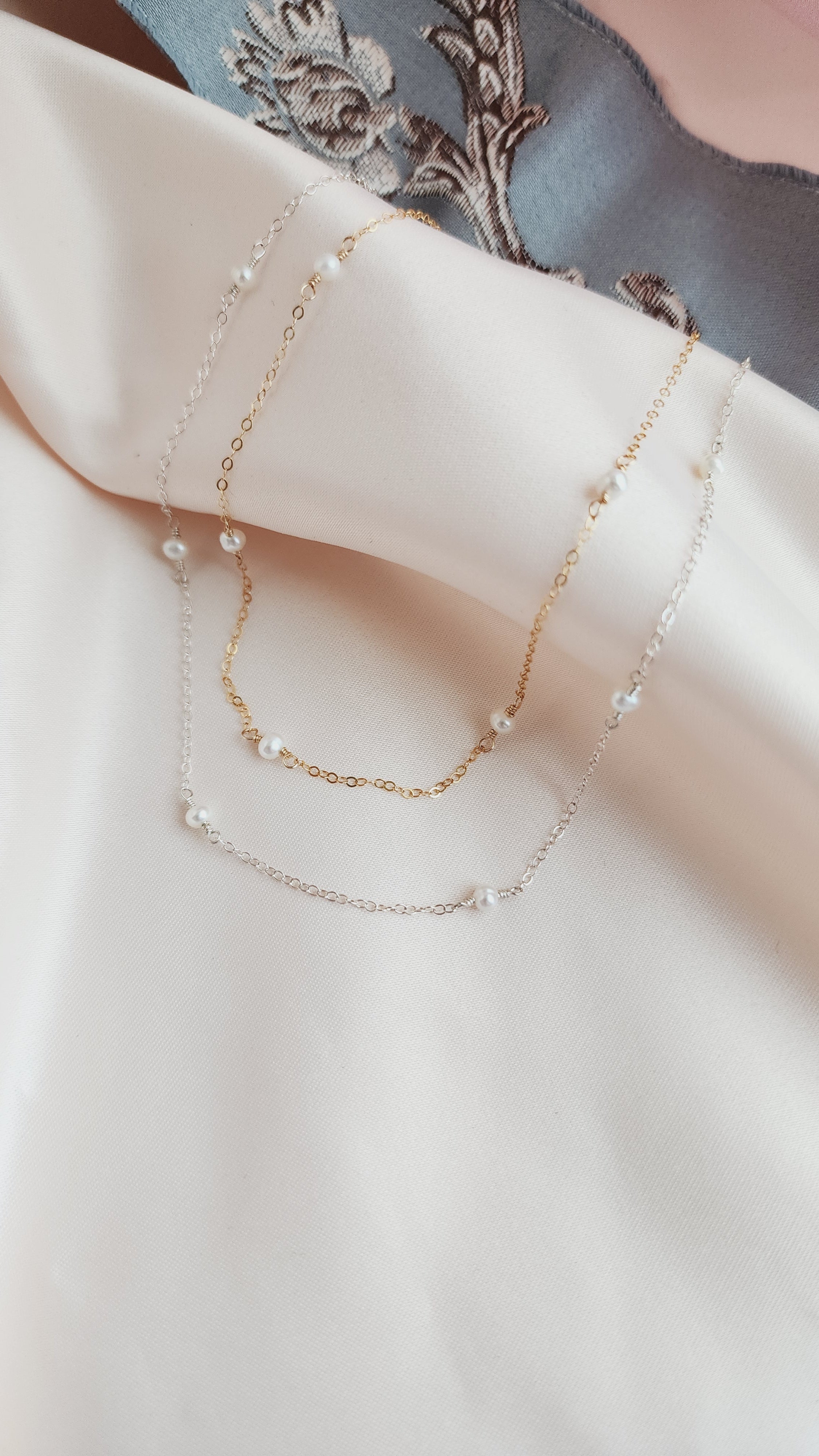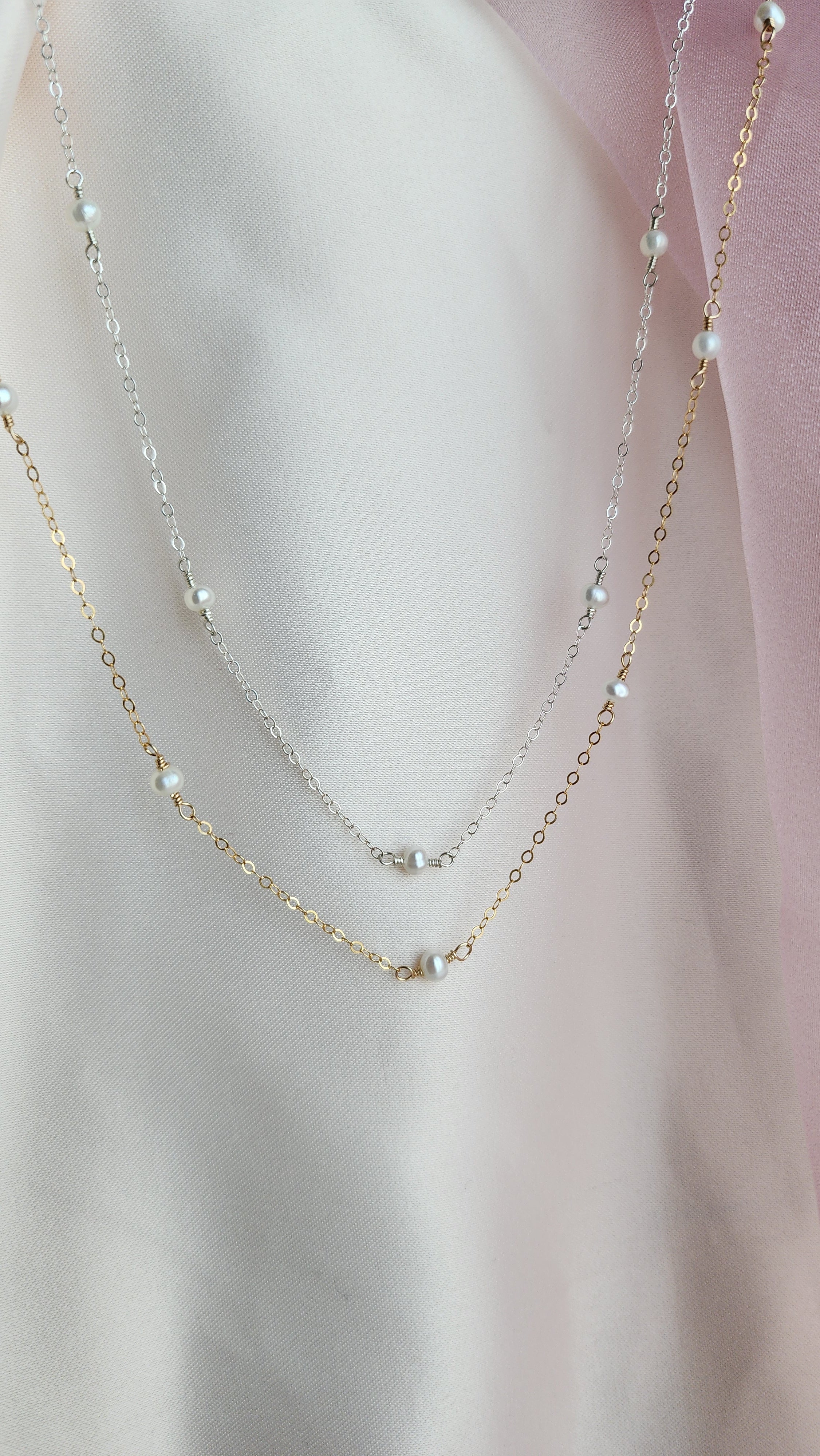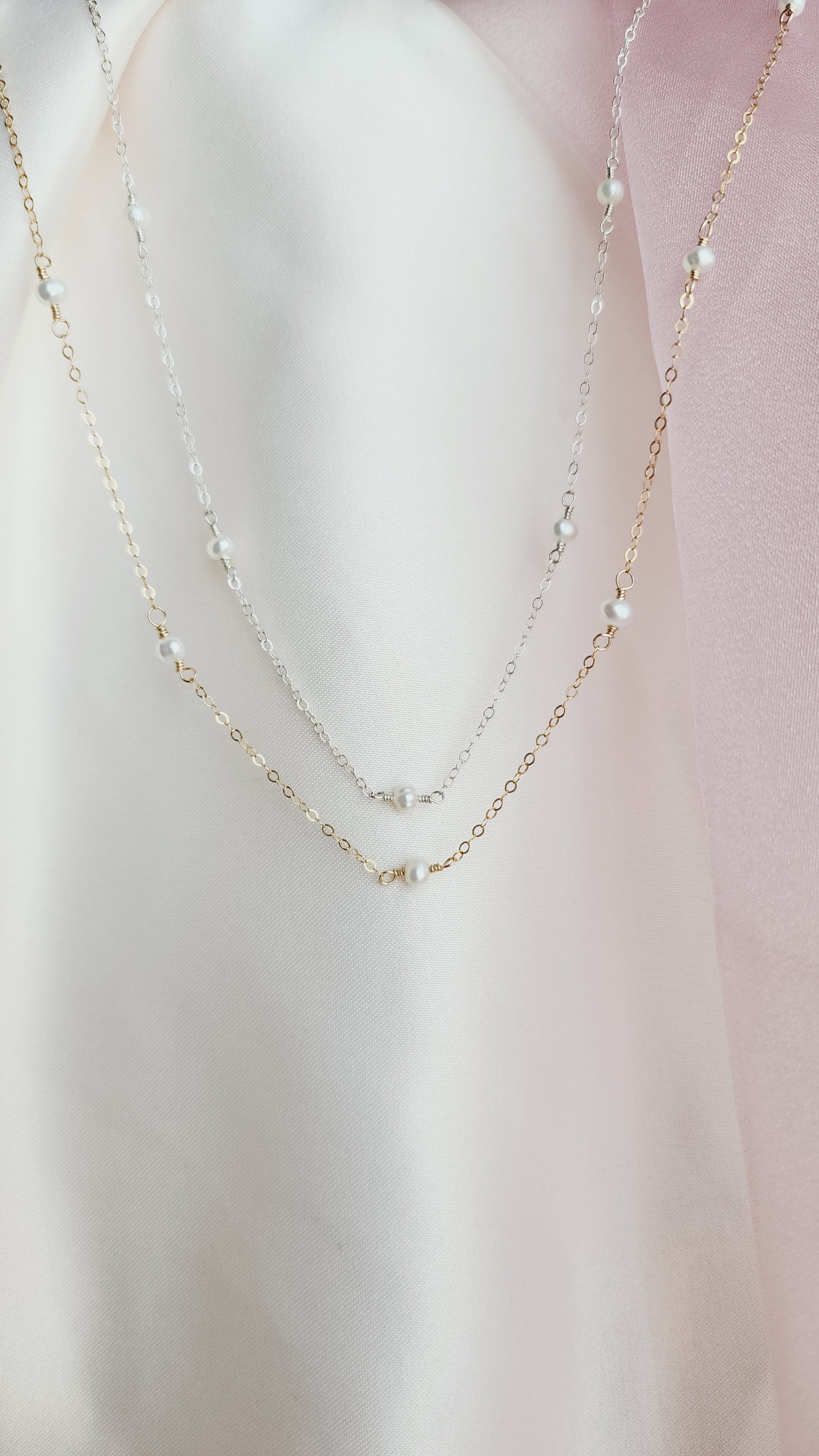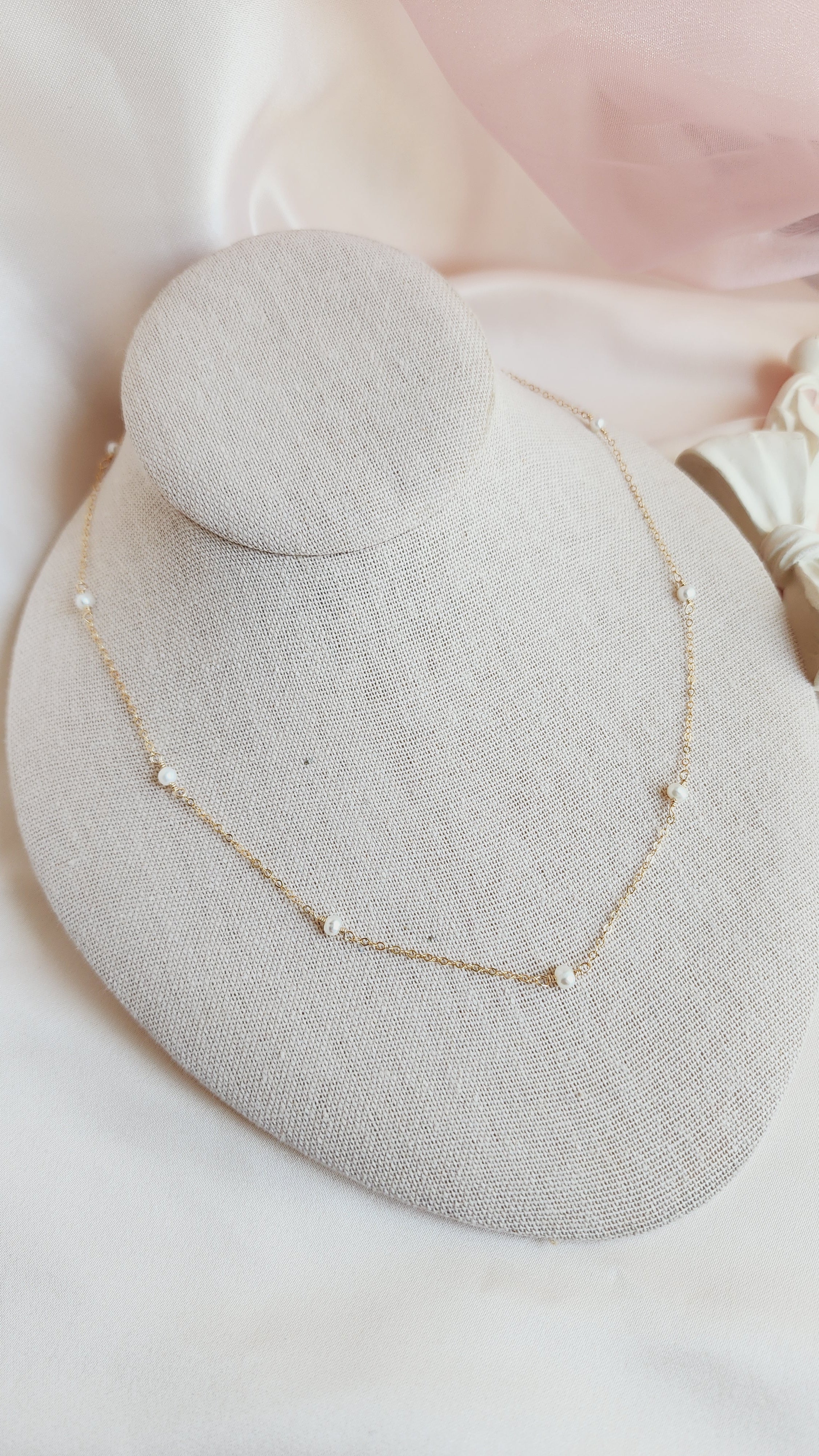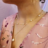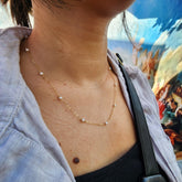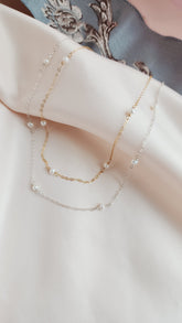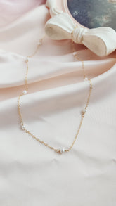 Discover our dainty 14kt gold-fill or sterling silver Pippa Pearl necklace with delicate freshwater pearls. This timeless piece offers a modern twist, with pearls gracefully floating along the chain to accentuate your collarbone. Perfect for layering or wearing solo, it’s an ideal choice for any occasion—whether as a stunning bridal accessory, an everyday favorite, or a cherished gift.