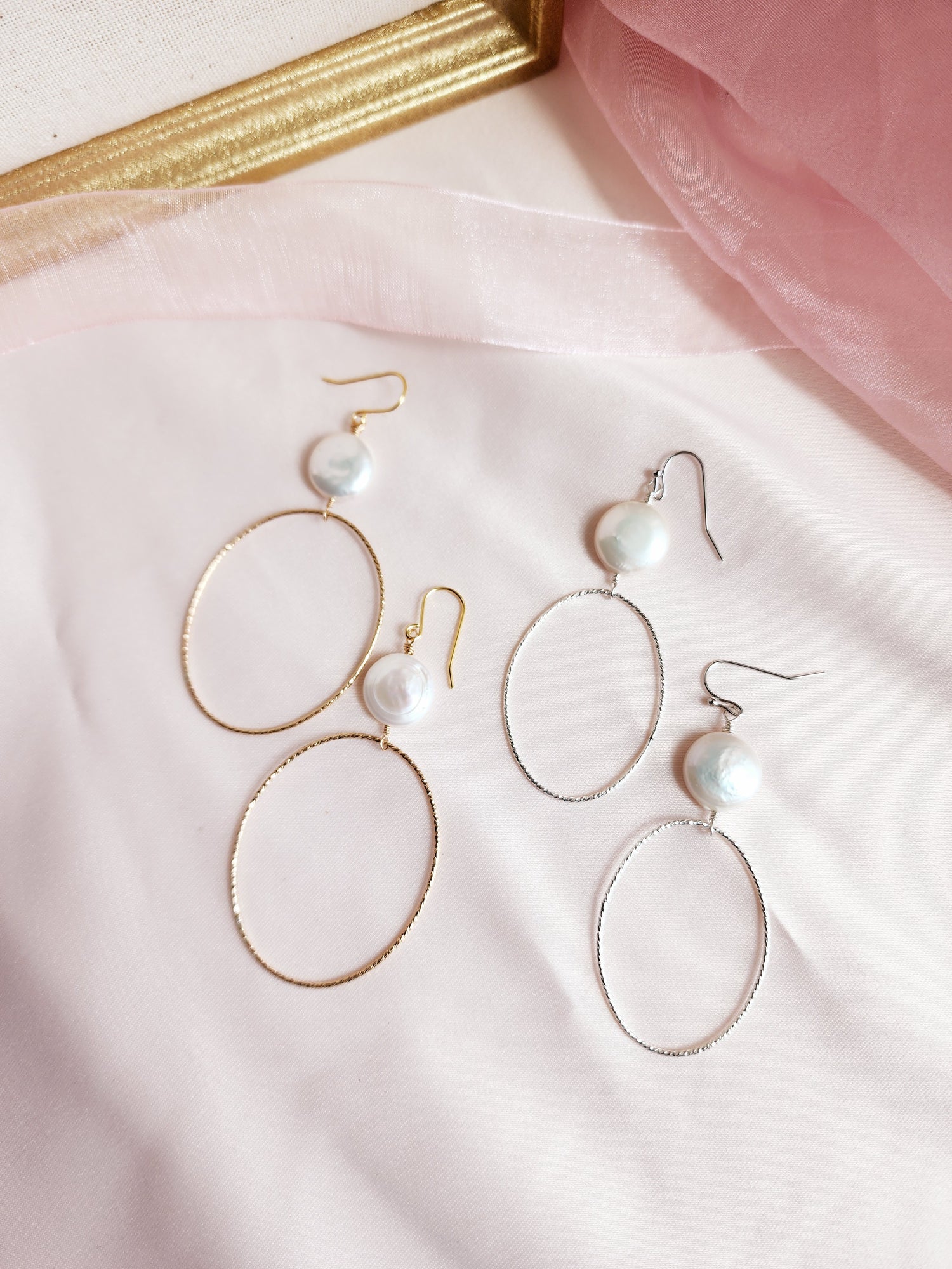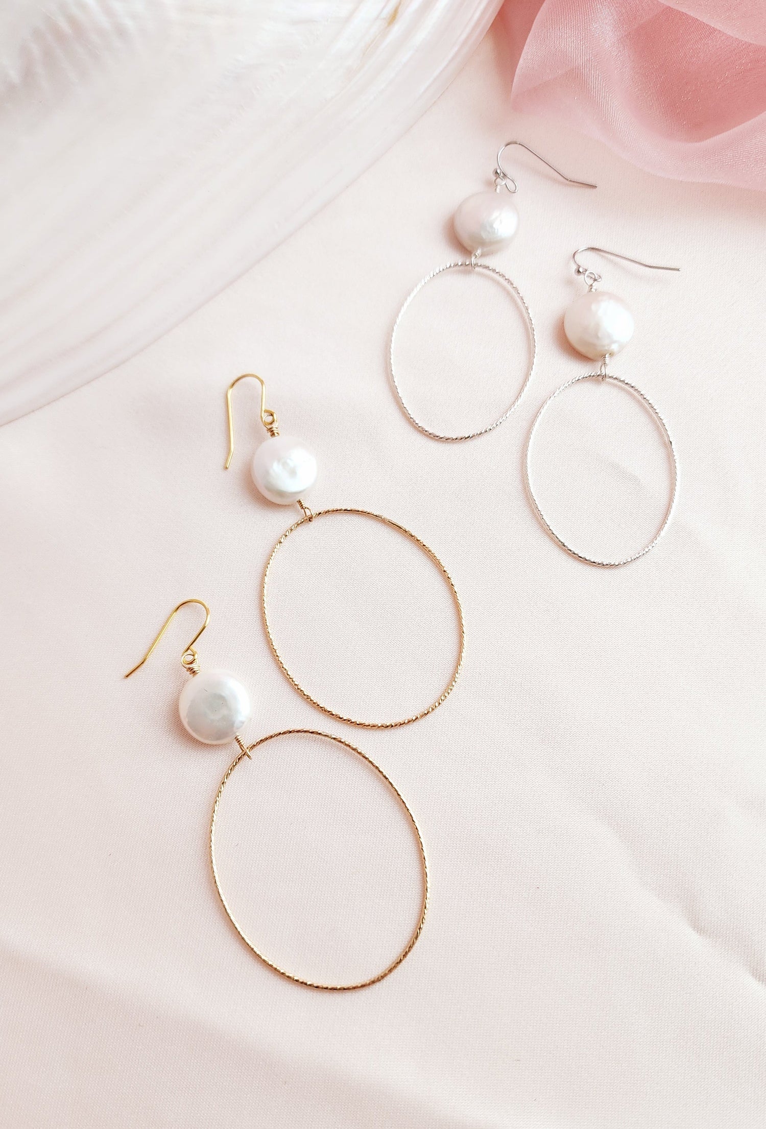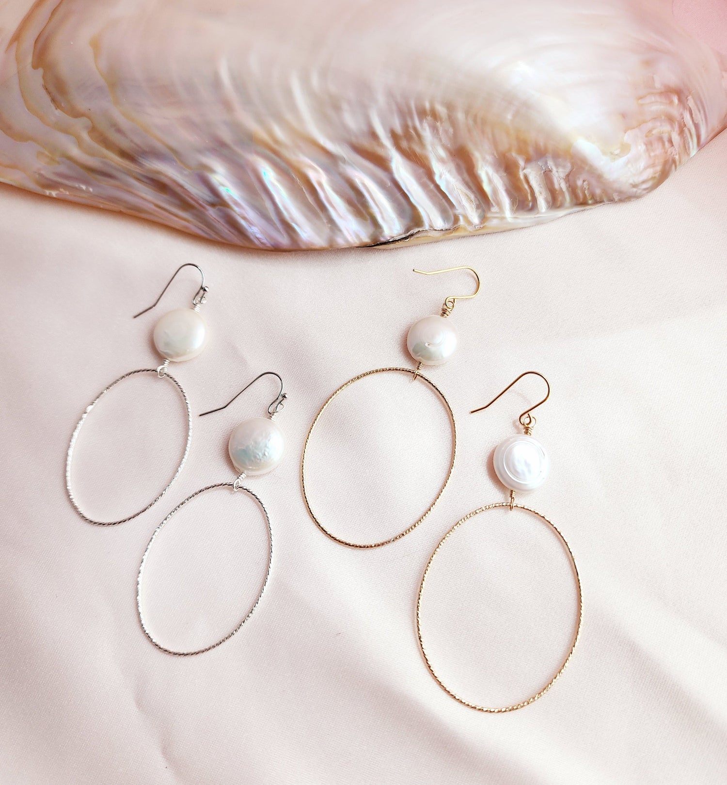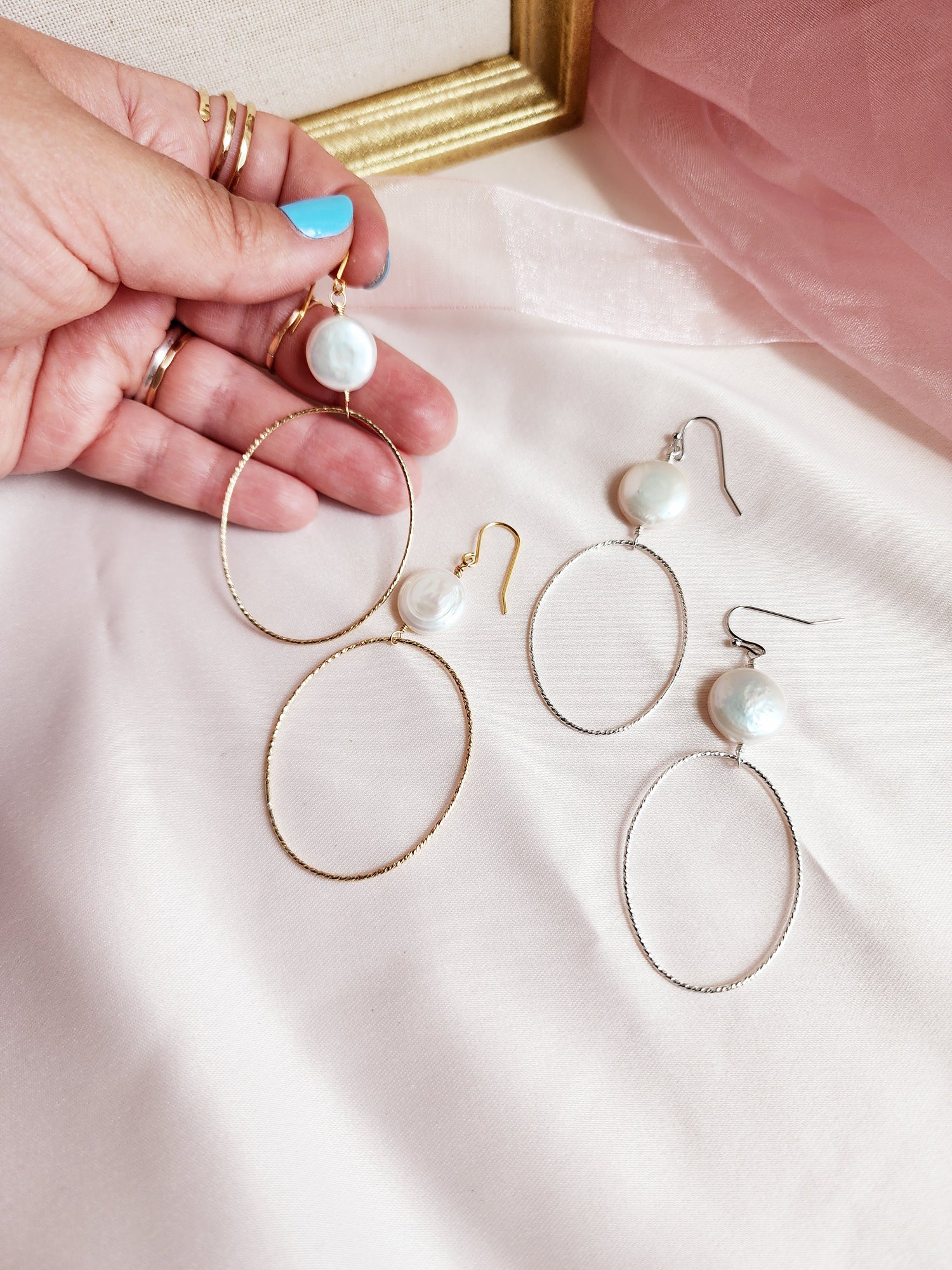 Coin Pearl Hoops | Darla Pearl Sterling and Gold