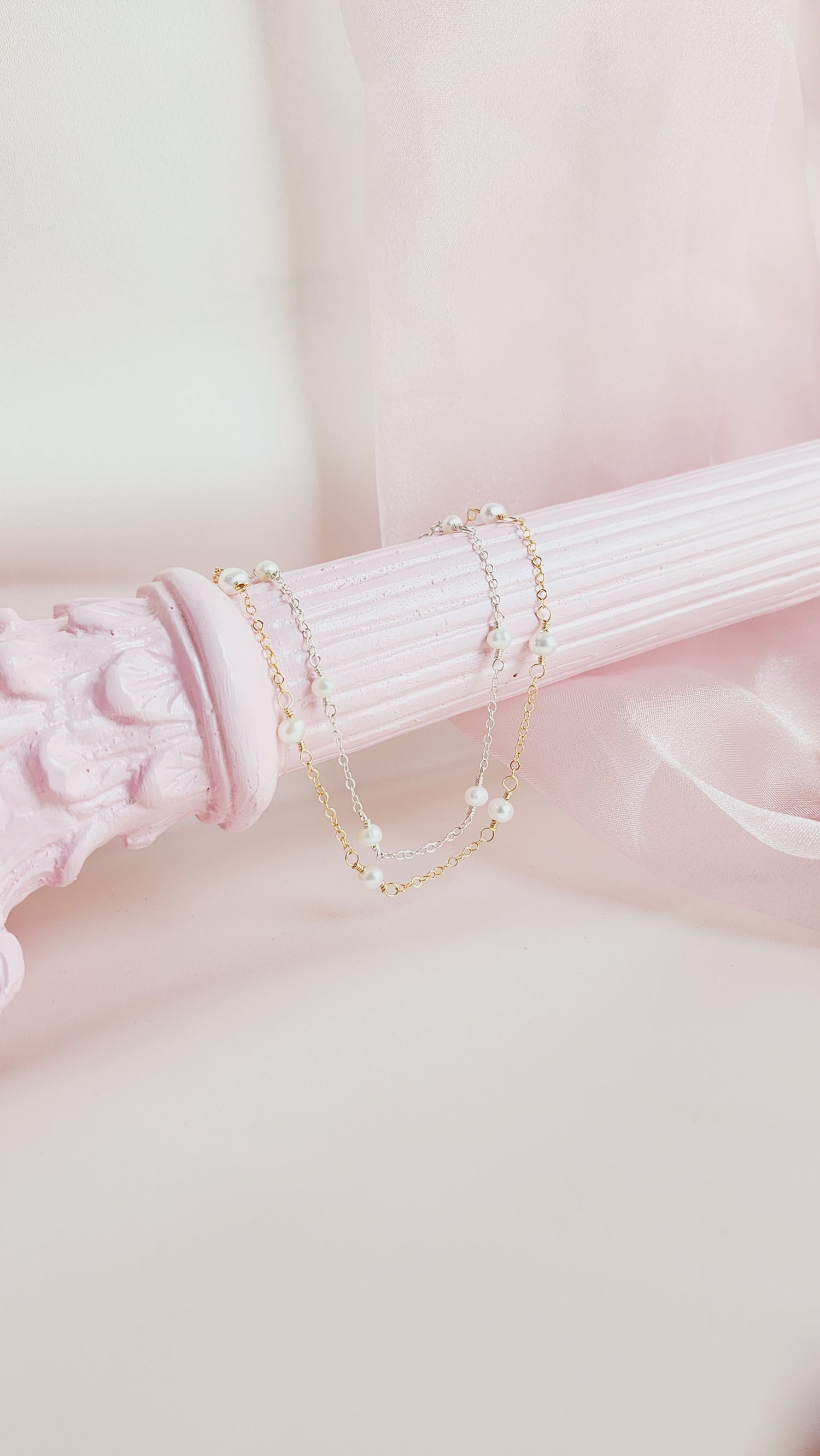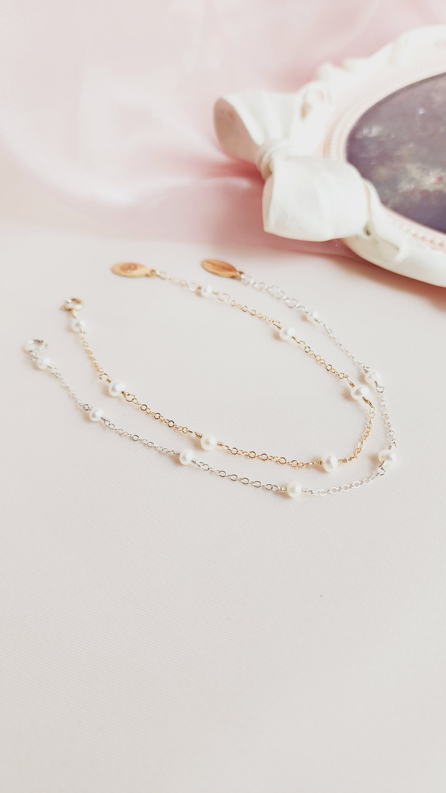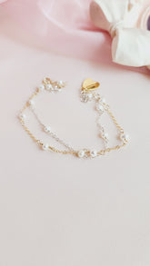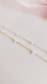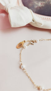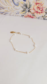The Pippa Pearl Bracelet is a darling piece featuring luminous pearls linked on a sparkling 14kt gold fill or sterling silver chain. Perfect for everyday wear, a thoughtful anniversary gift, or special occasions like your wedding, this bracelet adds a touch of whimsy and elegance to any look. Our 2024 bride, Ali, chose the 14kt gold fill Pippa Pearl Bracelet, paired with our handmade Abba Statement Pearl Earrings, for her romantic wedding day ensemble—and continues to wear it for other occasions. Select your preferred metal and size below to make this timeless piece yours.
