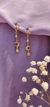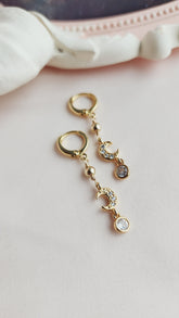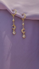 One of my best-selling huggie hoops, these charming earrings feature a delicate crescent moon and a sparkling CZ bezel-set crystal, creating a flirty, magical vibe. Ideal for everyday wear or for brides embracing a celestial or romantic evening wedding theme, these earrings are the perfect balance of whimsy and elegance. Measuring at 1.25", they add just the right amount of sparkle to any look. Treat yourself or a loved one to these enchanting earrings!
