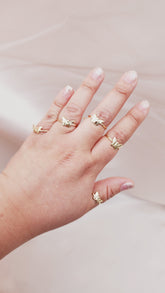The Betsy Butterfly Ring is a sweet, handcrafted piece made by us from 14kt gold fill—a high-quality material crafted with real gold layers bonded to a durable core. Unlike costume jewelry, which tarnishes over time, our demi-fine jewelry is designed to last. 14kt gold fill is water and tarnish-resistant, offering the look and feel of fine jewelry without the hefty price tag. We pride ourselves on using high-end materials, like a fine jeweler, but at a more affordable price.