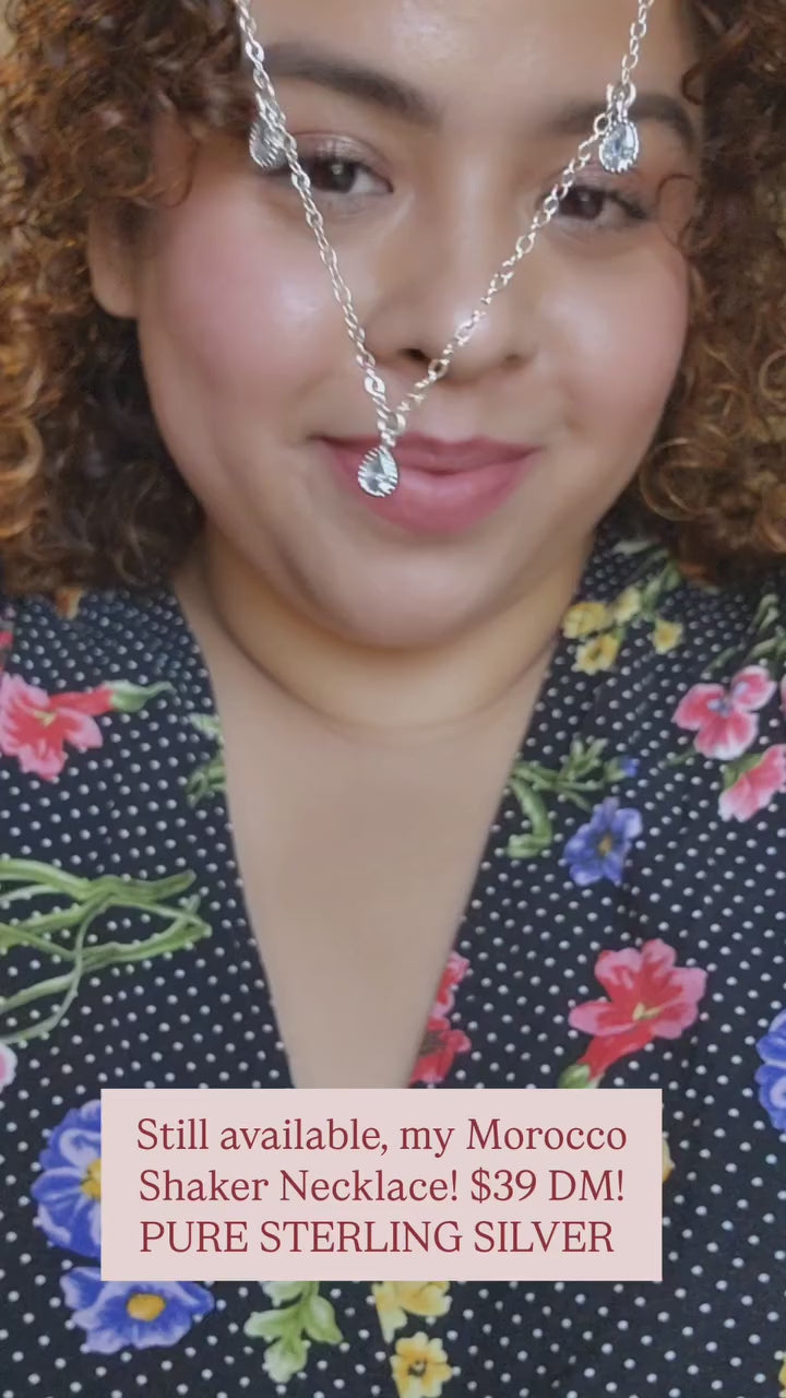The Morocco Shaker Necklace is crafted in sterling silver with a 22" length that flatters every neckline, from petite to curvy. Its movement catches the light with every step, giving you that chic, sexy confidence that makes even simple outfits feel elevated. Picture it grazing your collarbone with a sleek dress for date night or layered over a casual tee and jeans for an effortlessly cool vibe. This is the necklace you’ll reach for when you want to feel bold, feminine, and unforgettable. Only one left, and will not be made again, final chance!