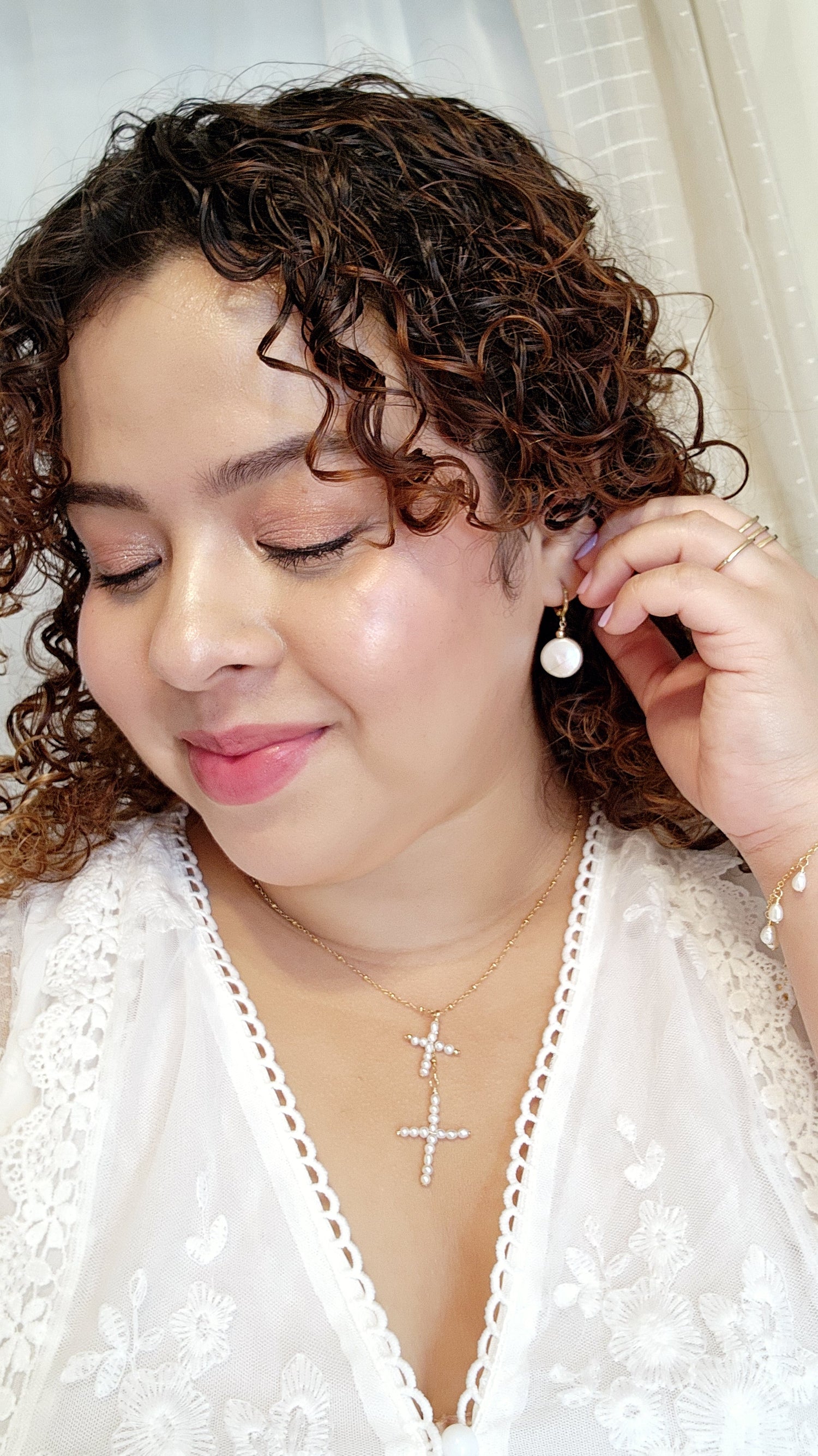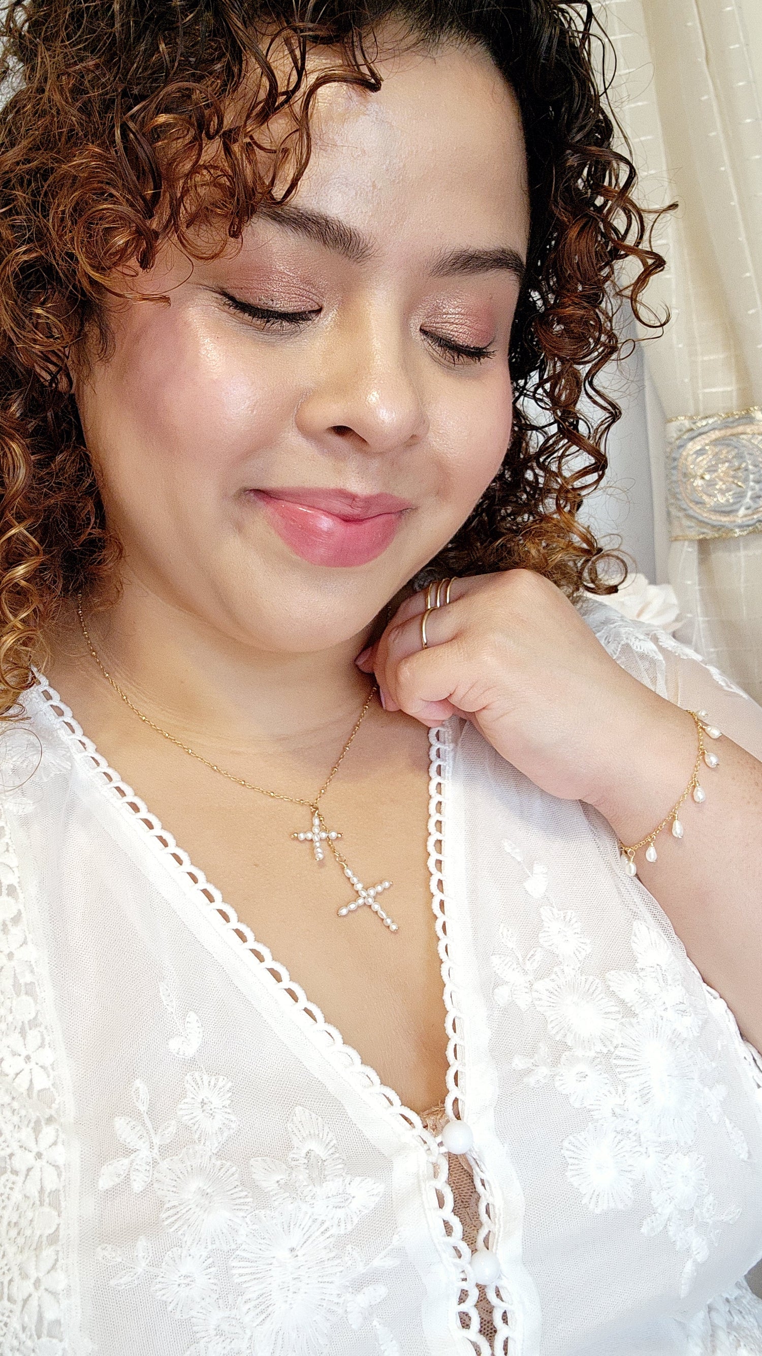 The Pearl Cross Necklace is a one-of-a-kind treasure, handcrafted with love and care. Each pearl cross is made by hand—unique and never exactly the same—then strung on a delicate satellite chain that moves gracefully with every gesture. Featuring double crosses, this necklace evokes the romantic feel of a rosary while adding a contemporary twist, reminiscent of Spanish Renaissance elegance. Perfect for the modern bride, bridesmaids, or anyone who cherishes jewelry with history, artistry, and soul, it’s a piece that brings both sophistication and whimsical movement to any outfit. Lightweight, meaningful, and utterly timeless, the Pearl Cross Necklace is designed to become a cherished keepsake for everyday wear or special occasions.