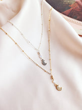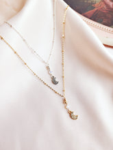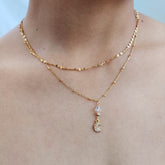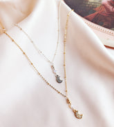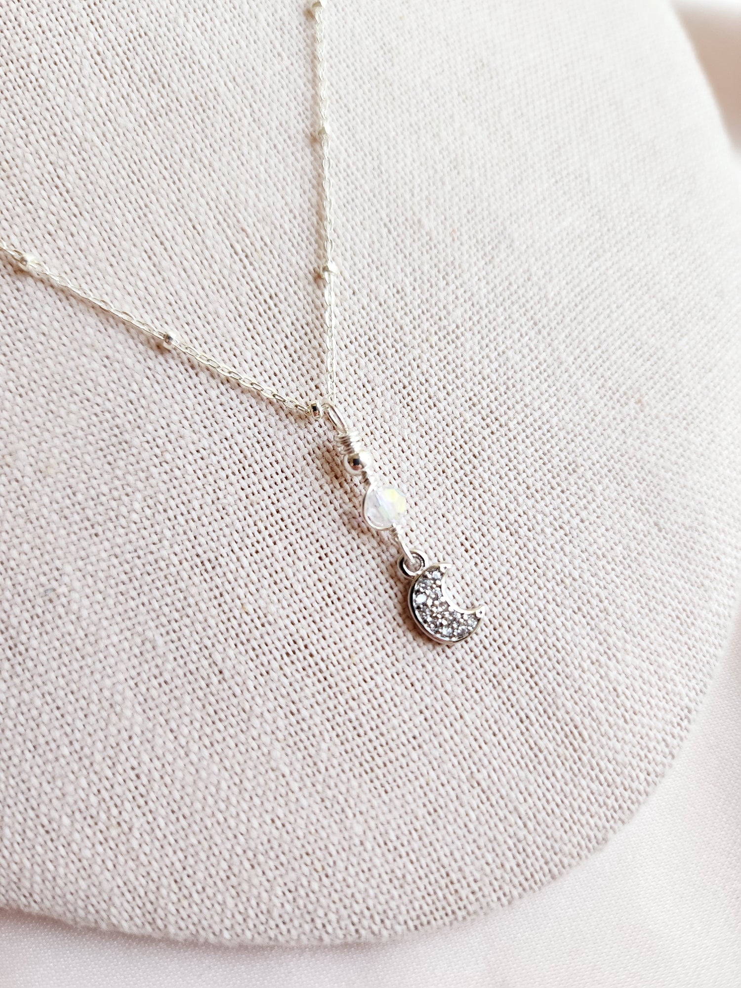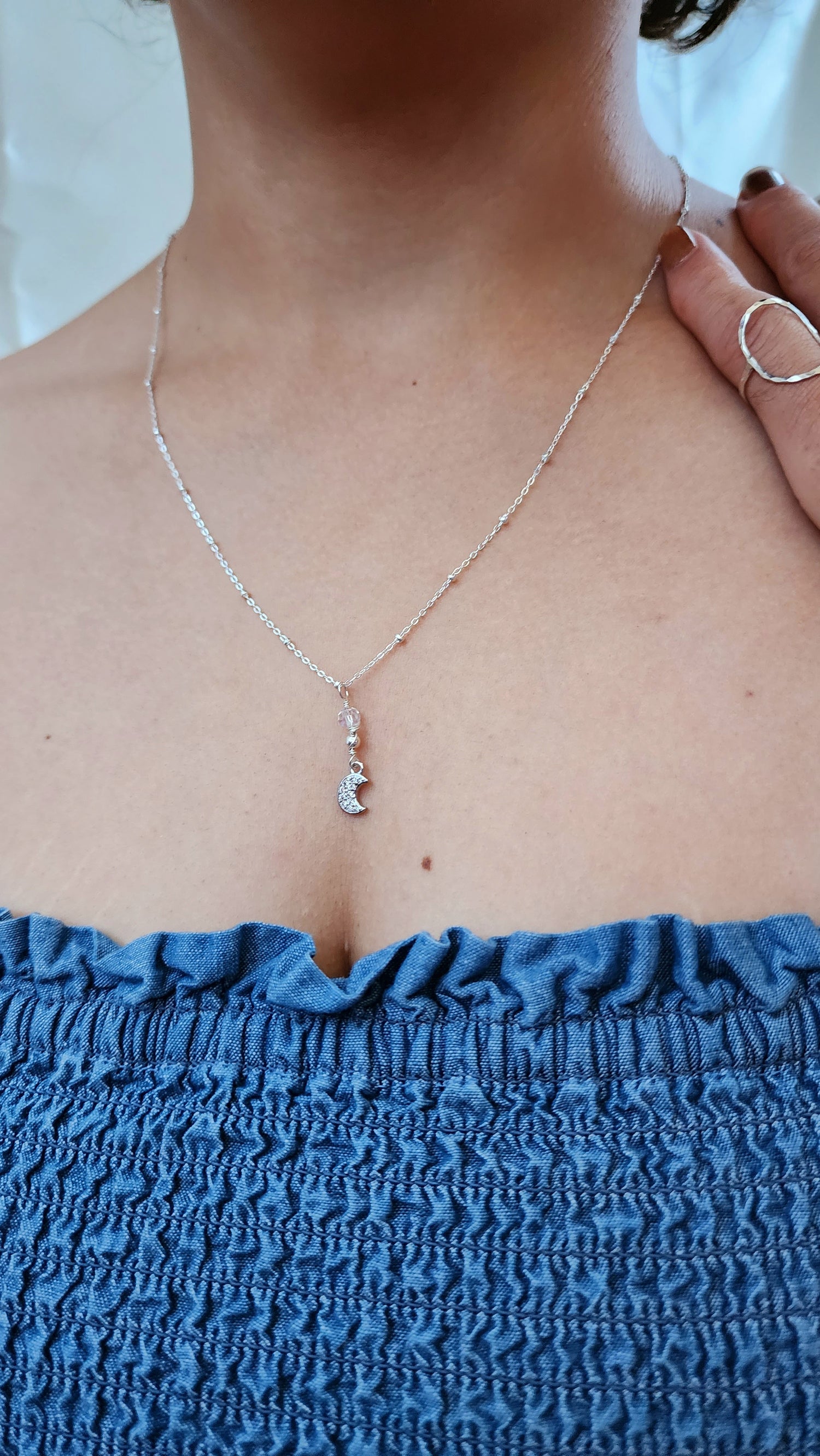 Crescent moon necklace made out of 14kt gold fill and sterling silver statellite chain