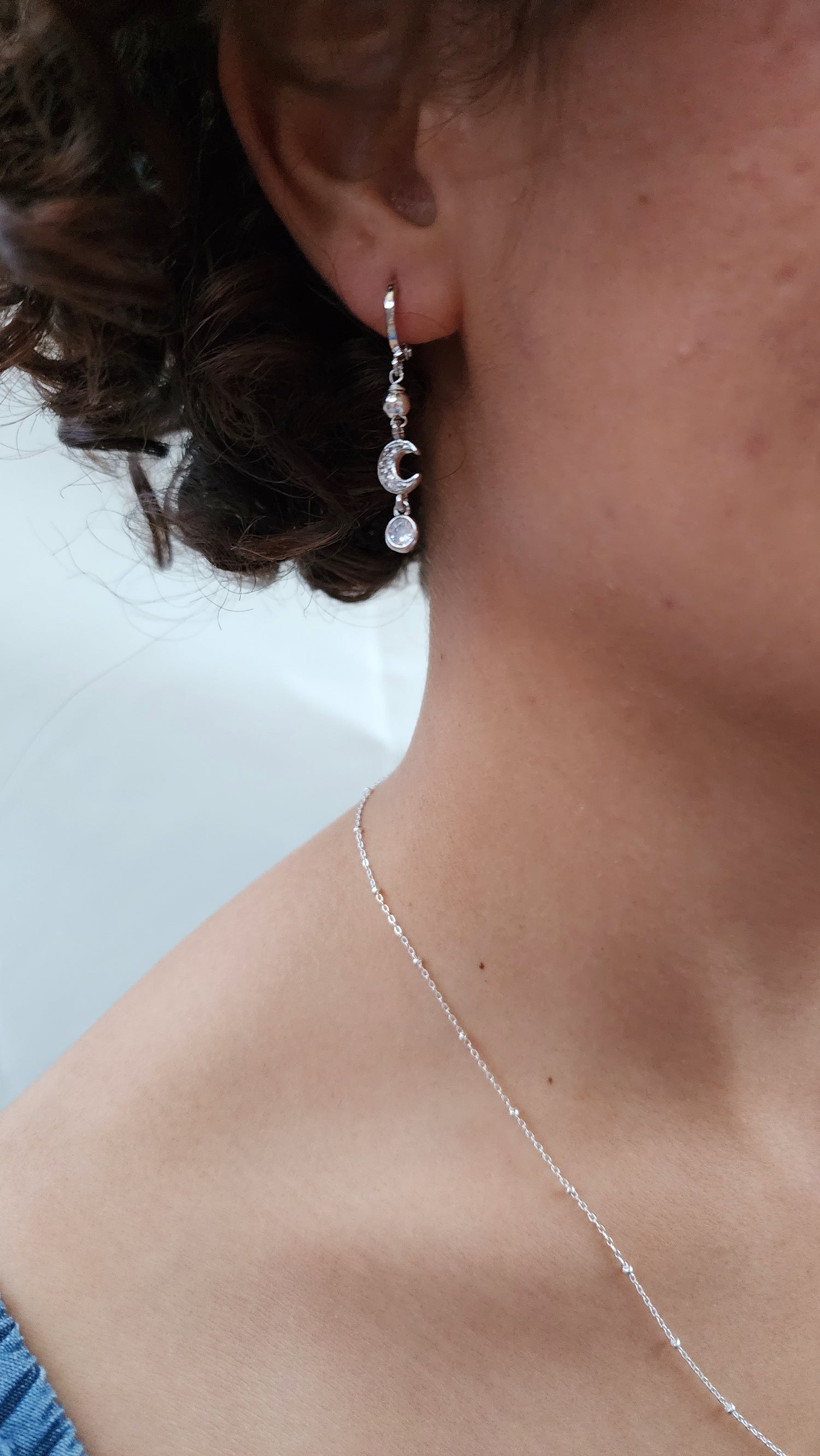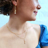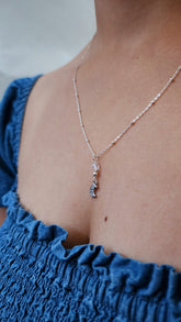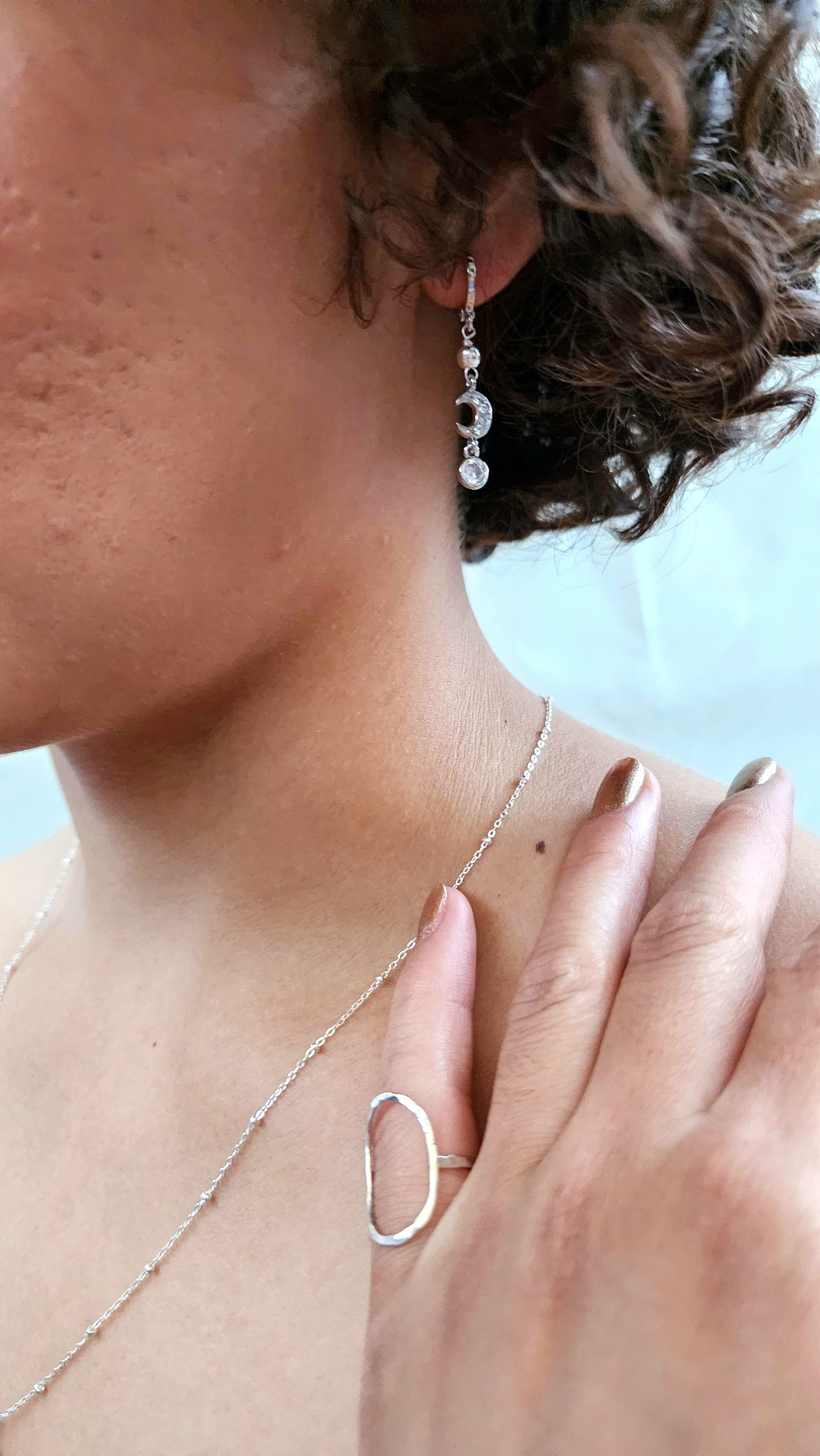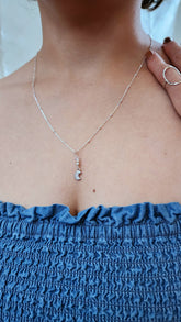 The Luna Crescent Necklace has been one of our most-loved designs at events, and now it’s finally available online. This necklace blends heirloom charm with a modern, sexy edge, featuring a delicate crescent moon pendant wire-wrapped with your choice of hollow 14kt gold fill or sterling silver bead, finished with a sparkling crystal detail. The satellite chain adds beautiful movement and a touch of celestial romance, making the piece feel like a long-lost treasure rediscovered. Perfect on its own or layered with your favorite necklaces, the Luna Crescent is versatile enough for the everyday jewelry lover while also offering a meaningful option for brides looking to add a unique, personal touch to their wedding-day look. Matching earrings are sold separately for a complete set that’s both playful and elegant.