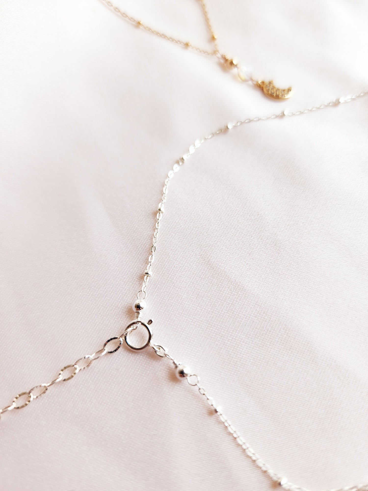 • Sterling Silver: We also adore the timeless elegance of sterling silver. Made from 92.5% pure silver mixed with other metals, sterling silver is renowned for its graceful charm. Over time, sterling silver may develop a stunning patina, showcasing its unique journey alongside you. Don't worry! A gentle polishing with a soft cloth will effortlessly restore its luminous allure.